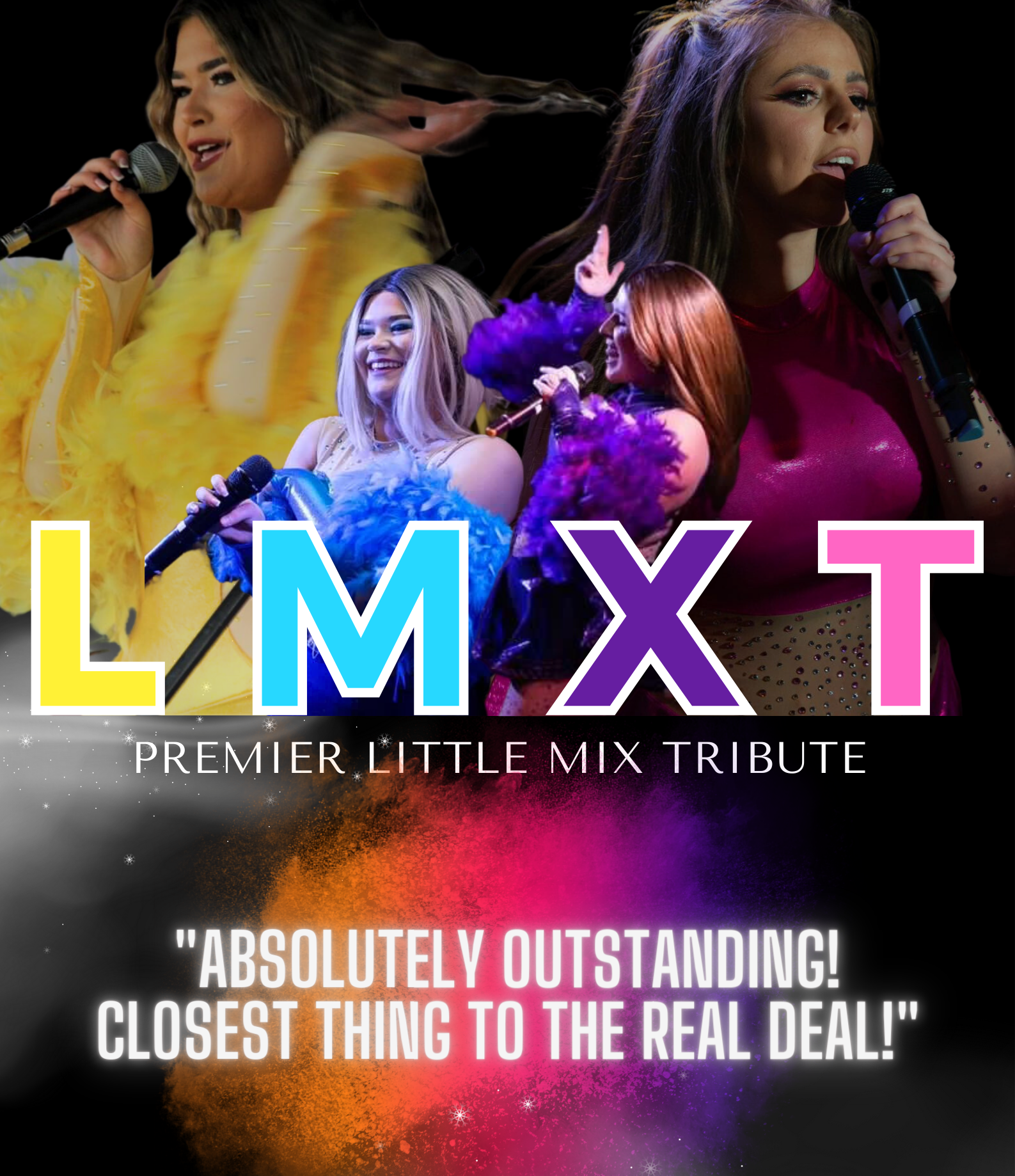 Our Little Mix tribute band brings together intricate four part harmonies and high-energy dance routines to create a real live concert atmosphere in any type of venue. The fully choreographed show features top hits from the past three Little Mix albums, mixed with some of today's top chart hits and features tracks to appeal to all ages and tastes.
